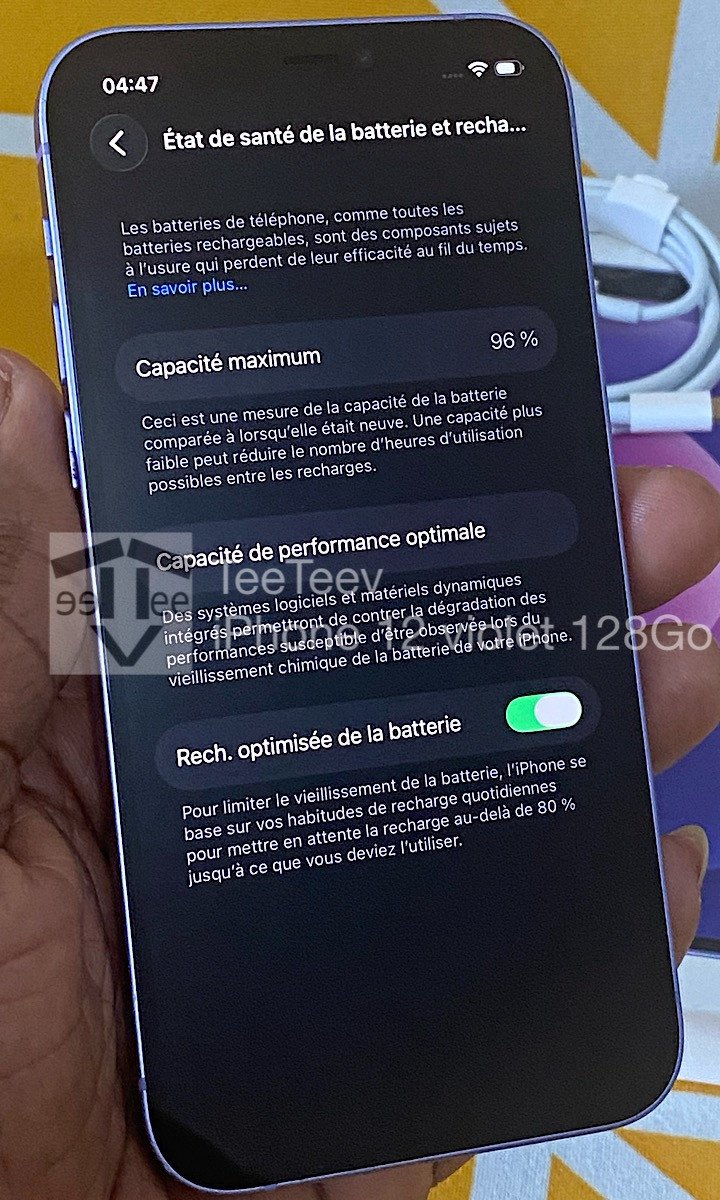 Etat de santé batterie 96% livré dans coffret d'origine, câble usb-c, protections fournies dans la limite des stocks disponibles. Garantie Standard 12 mois.